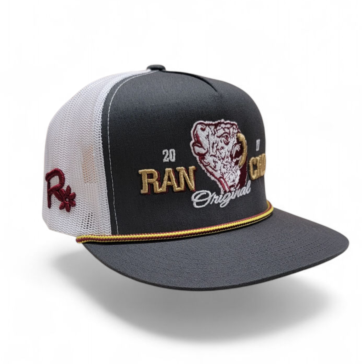 King Hereford Bull Rope Hat Rancho Original Old Gold Trim Distinctive Design with Unique Trim for Rancho Enthusiasts Classic Adjustable Snapback Closure